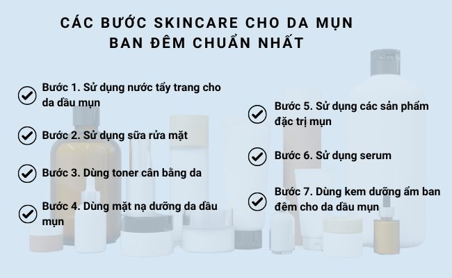 Để duy trì được sự khỏe mạnh cho làn da dầu mụn, việc lựa chọn sản phẩm phù hợp và xây dựng một Skincare Routine Cho Da Dầu Mụn: Các Bước Cơ Bản Và Sản Phẩm Khuyên Dùng là điều cực kỳ quan trọng. Người dùng nên chú ý đến các thành phần như Salicylic Acid, Niacinamide hay Benzoyl Peroxide trong sản phẩm trị mụn, đồng thời không quên giữ gìn thói quen ăn uống và sinh hoạt lành mạnh.