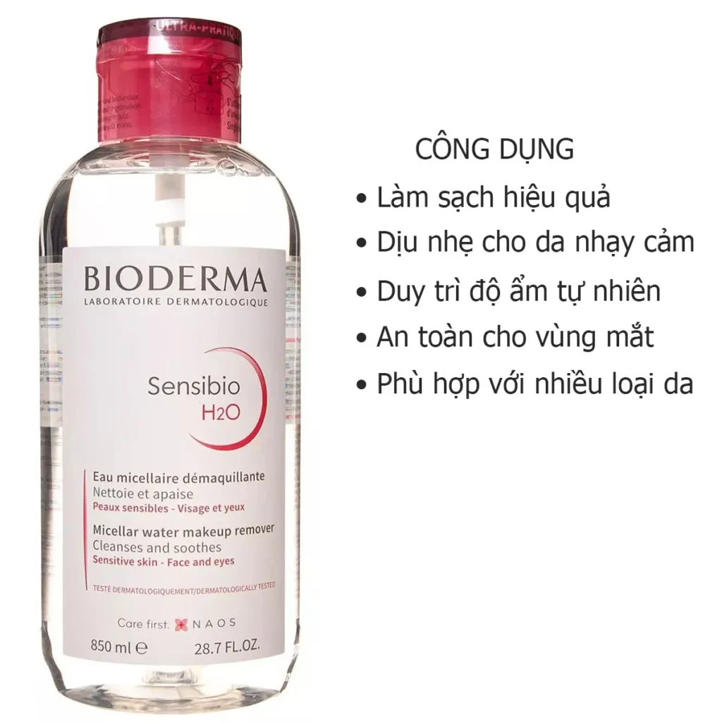 – Làm sạch hiệu quả: Bioderma Sensibio H2O có khả năng loại bỏ hoàn toàn lớp trang điểm hàng ngày, kể cả mỹ phẩm khó nhằn.