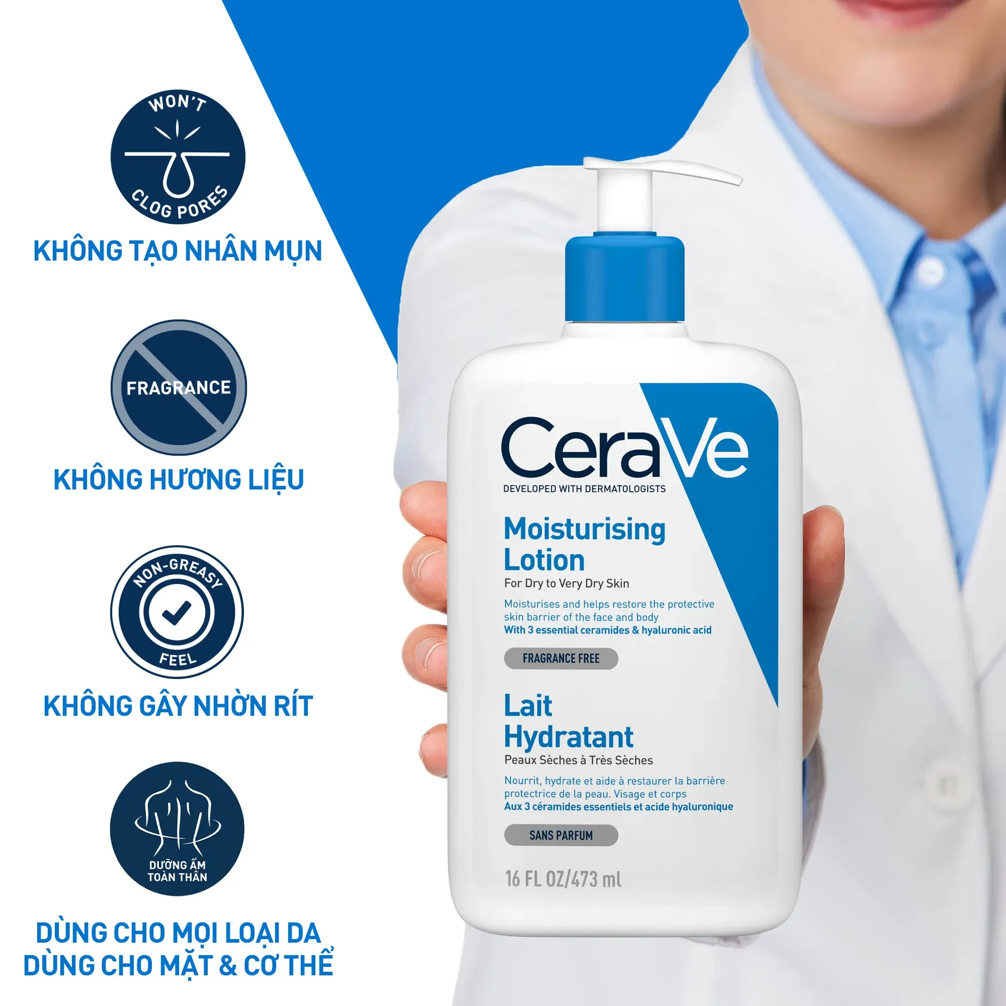 - – Chứa các thành phần dưỡng ẩm vượt trội như Ceramides, Hyaluronic Acid.